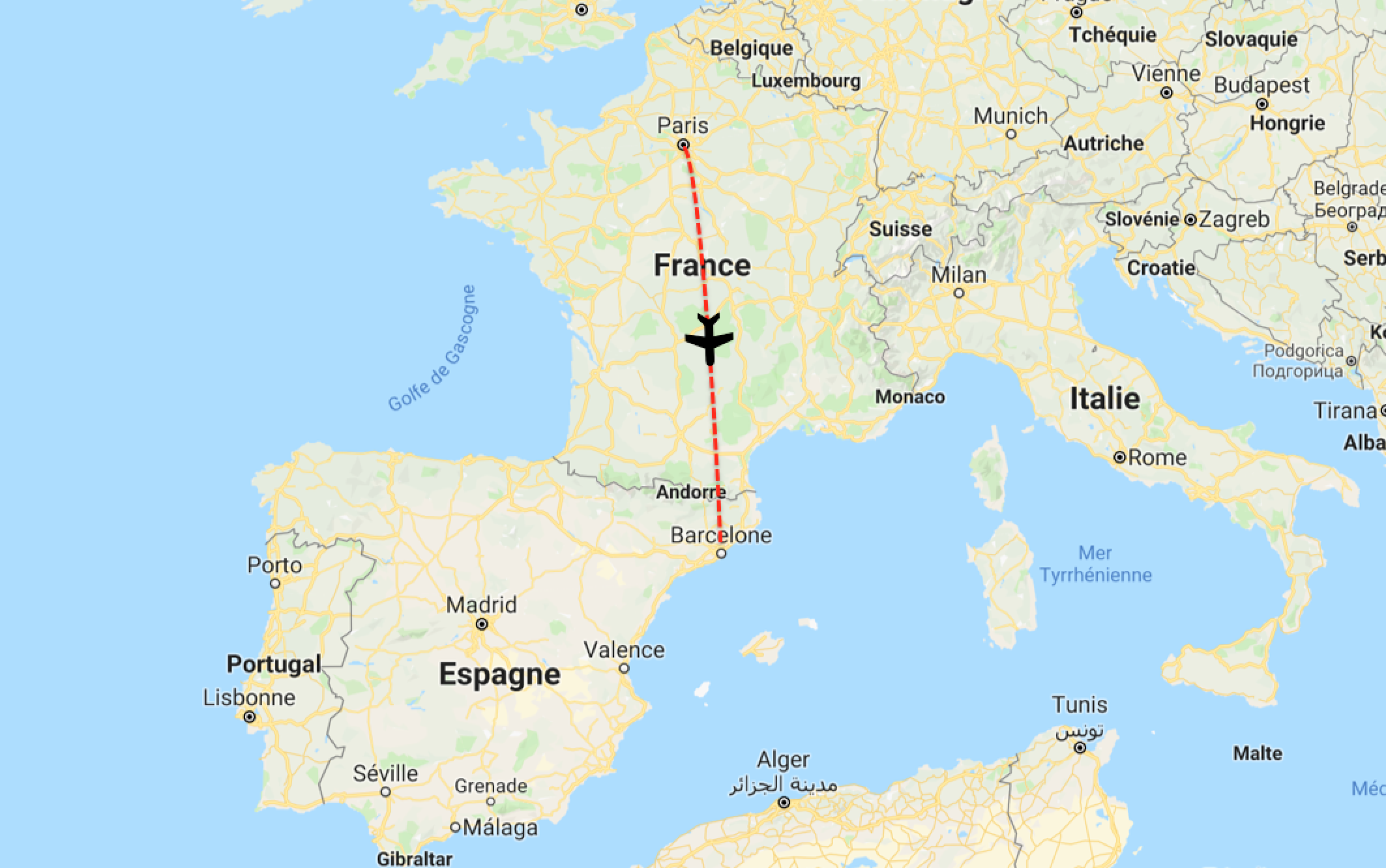 Les 3 familles, que nous noterons A, B, et C, habitent toutes les trois Paris (nous admettrons pour simplifier qu’elles partent du même endroit dans la capitale) et souhaitent aller à Barcelone lors du week-end de l’Armistice de 1918, qui commence le samedi 9 Novembre au matin et se termine le lundi 11 Novembre au soir.
