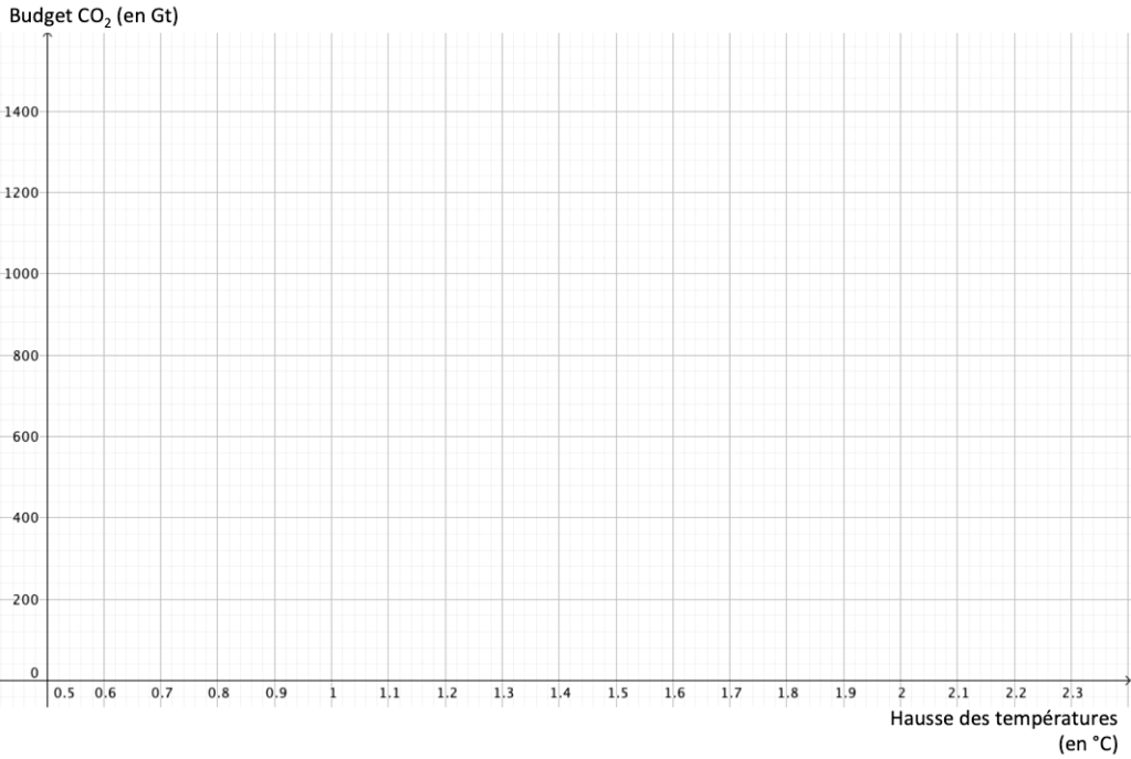 1) Au moment où Greta Thunberg prononce ce discours, quel est, en gigatonnes, le budget de CO2 encore disponible pour avoir 67% de chance de limiter l’augmentation des températures en-dessous de 1,5 degrés ? Arrondir à la dizaine près.