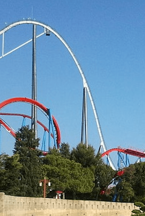 Ewan, qui est un élève de 1ère, décide un jour d’aller au parc avec ses amis. Il a lu sur une description de l’attraction que la première descente a une pente « inclinée au maximum de 86° au point d’inflexion », c’est à dire à l’endroit précis où la pente commence à diminuer. En observant d’en bas la première descente du Shambhala (on peut voir ce qu’observe Ewan sur l’Image 1), Ewan , qui justement a commencé à étudier les polynômes du second degré cette année, affirme sans sourciller : il reconnaît la forme d’une parabole qui va du sommet jusqu’au point d’inflexion ! Dans ce problème, nous allons vérifier la validité de l’hypothèse émise par Ewan.