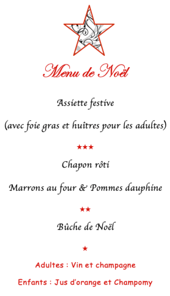 On regarde ci-dessous le menu du dernier repas de Noël de la famille Petitjean: