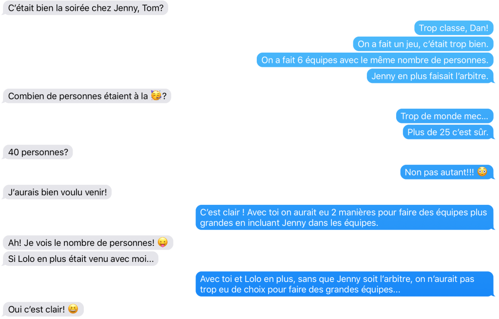 Que ce soit par SMS ou par les différentes messageries instantanées (WhatsApp, Messenger…), les textos sont devenus depuis très longtemps, pour les ados, une forme de communication aussi banale que le téléphone. Même si il faut faire attention à la dépendance possible, il faut reconnaître que les textos permettent de souder les jeunes qui restent en contact entre eux. Dans ce problème, nous allons justement suivre un dialogue par textos entre Dan et Tom, deux collégiens qui ont, comme tous les jours, bien des choses à se raconter via leur messagerie instantanée habituelle.