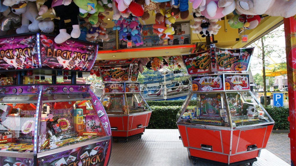 Le pousse pièces (ou pousse jetons) est ce jeu mondialement connu que l’on retrouve dans toutes les fêtes foraines. Qui n’a pas au moins une fois glissé un jeton dans cette machine de jeu en espérant faire tomber d’autres jetons ou des points (qui permettent d’obtenir ultérieurement des cadeaux)? On peut passer des heures entières à faire le même geste répétitif – insérer un jeton – et à regarder la masse de jetons se déplacer vers l’avant et tomber pour être insérés à nouveau. Entre amis, c’est un jeu aussi plaisant qu’addictif.