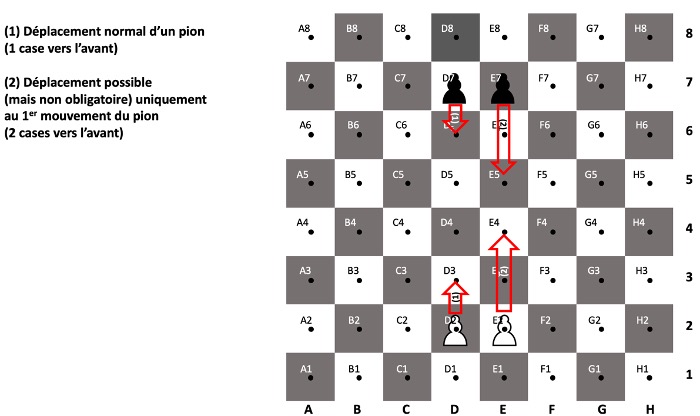 1) a) Beth a dû d’abord apprendre le mouvement d’un pion simple. Compléter les pointillés dans les phrases suivantes :