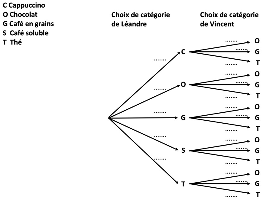 b) En déduire la probabilité que Léandre et Vincent choisissent une boisson dans la même catégorie.