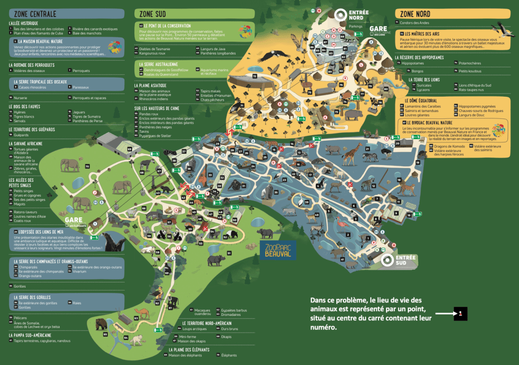 (*) Le plan du ZooParc de Beauval est utilisé pour ce problème avec l’aimable autorisation du parc : https://www.zoobeauval.com/
