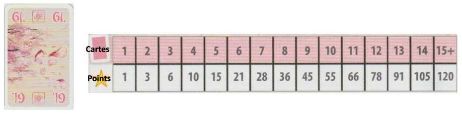 Créé en 2019 par Steffen Benndorf, à qui on doit des jeux comme Qwixx, le jeu Ohanami est un hommage à cette période du printemps où les Japonais ont le bonheur de contempler les cerisiers en fleurs – les fameux « sakuras ». Le principe du jeu est d’y construire de la manière la plus intelligente ses 3 jardins japonais en y posant des sources d’eau, de la végétation, des pierres, et enfin des sakuras. Sans entrer dans le détail des règles du jeu, nous allons dans ce problème nous intéresser à la manière dont les points y sont calculés.