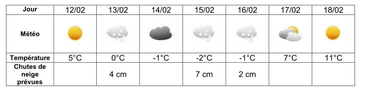 - les jours où il neige, les épaisseurs de chute de neige prévues s’ajoutent directement à la hauteur de neige déjà présente.