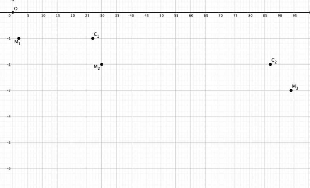 Placer les points correspondants aux matchs PSG-FC Barcelone et PSG-Real Madrid (on les nommera respectivement B1, B2, B3, B4, B5, B6 et R1, R2, R3).