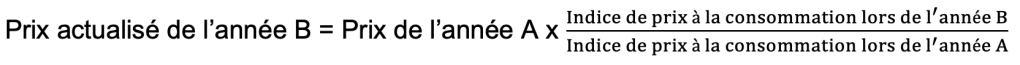 Mais cette hausse de prix est-elle une réalité ? En effet, selon le Centre National de la Cinématographie (CNC), en 2020, le prix moyen d’un ticket de cinéma en France n’était en fait que de 6,63 €(1), car il existe de très nombreuses façons d’obtenir des réductions ! De plus, quand on parle d’augmentation de prix, il est important de prendre en compte l’inflation. Ainsi, on rappelle que pour convertir le prix d’un ticket de cinéma d’une année A en un prix « actualisé » d’une année B, on doit appliquer la formule :