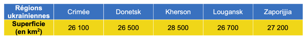 2) Justifier que le pourcentage du territoire de l’Ukraine annexé par la Fédération de Russie, en y incluant la Crimée, est d’environ 18%.