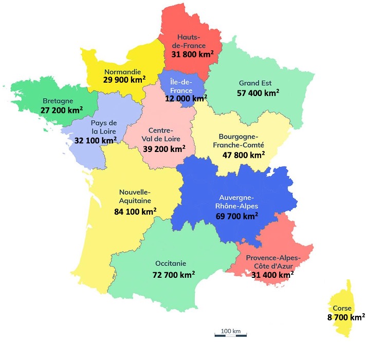 4) Imaginons qu’un pays voisin de la France annexe un pourcentage du territoire de la France métropolitaine aussi environ égal à 18%. On rappelle que la superficie de la France métropolitaine est de 543 940 km2.