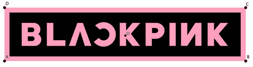 Dans ce problème, nous allons nous intéresser au logo de Blackpink, qui a accompagné le groupe depuis sa création. Ce logo a un design très simple, avec des couleurs unies rose/noir et aussi, ce qui en fait sa curiosité, quelques lettres modifiées (voir en Annexe). Remarquons que pour simplifier les notations du problème, on considère que le logo est dessiné dans un rectangle ABCD, avec un centre O.
