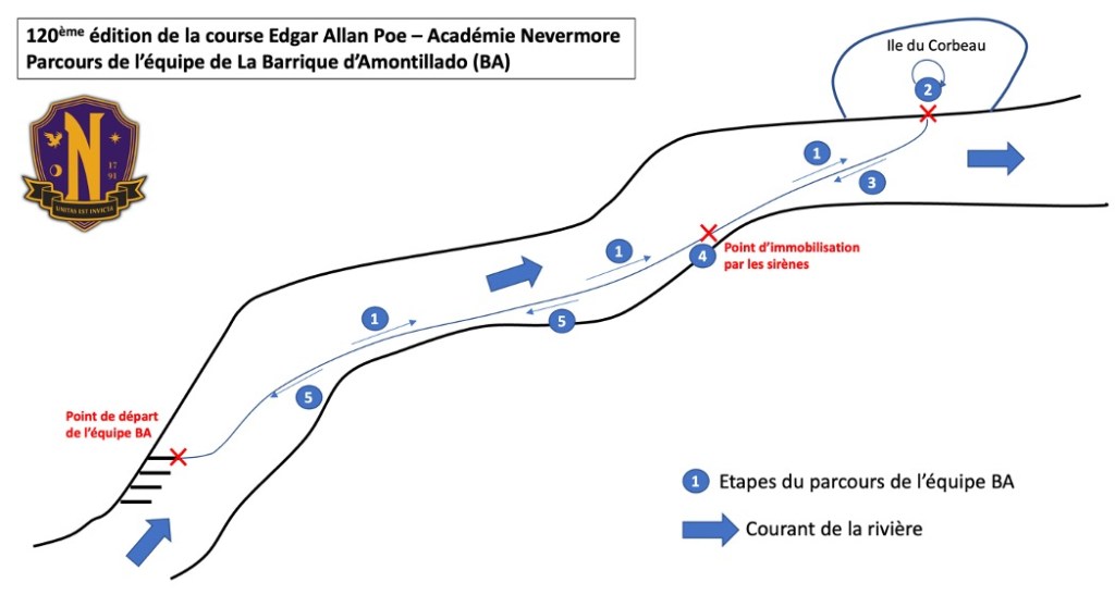 Comme Mercredi Addams l’a découvert dans la série qui porte son prénom, la course Edgar Allan Poe est l’épreuve légendaire de l’Académie Nevermore. L’objectif est de rejoindre en canoë l’île du Corbeau pour y récupérer un fanion, puis de revenir au point de départ. Tout serait bien simple si les adversaires n’avaient pas différents moyens de couler votre bateau, notamment des sirènes capables de vous renverser…