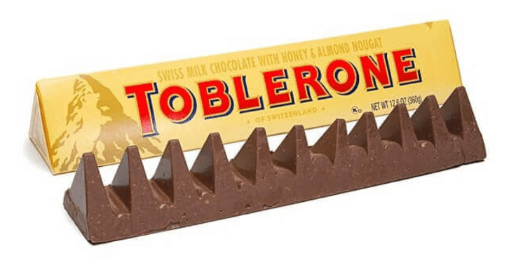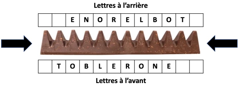 Qui n’a jamais goûté au Toblerone ? Cette barre de chocolat suisse est aujourd’hui un grand classique, facilement détectable par son iconique emballage jaune (pour la version « chocolat au lait »). La barre, elle, ressemble à 12 dents reliées, chacune étant assimilable à un prisme à base triangulaire. Sur ces dents, les lettres du mot « Toblerone » sont écrites, d’un côté et de l’autre. On se propose dans ce problème d’étudier ces lettres.