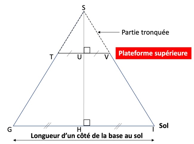 En utilisant le théorème de Thalès, déterminer quelle serait la hauteur de la pyramide paztèque (la longueur SH sur le schéma de l’Annexe 4) si elle n’était pas tronquée au niveau de la plateforme supérieure.