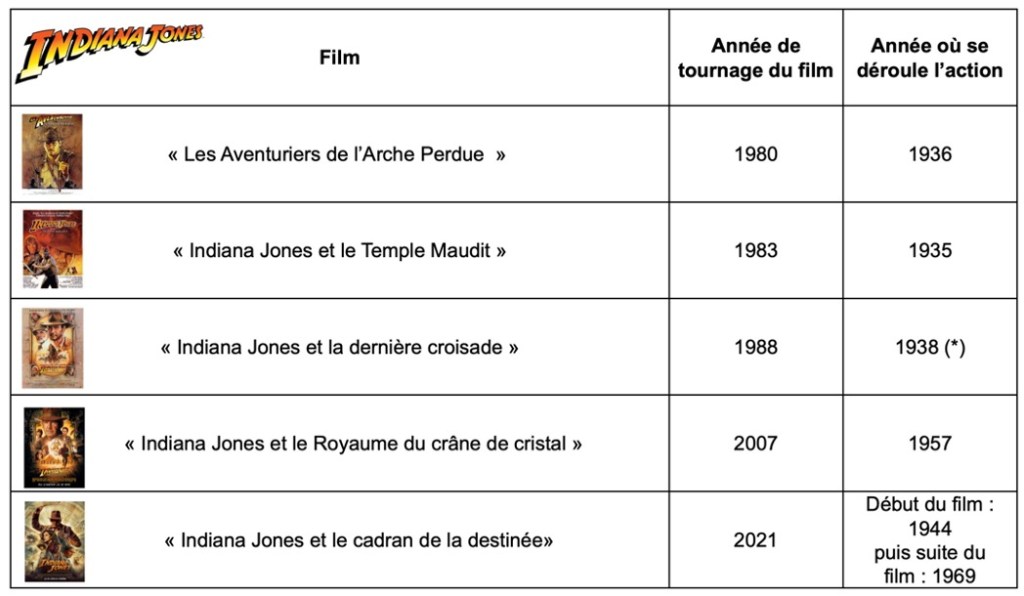 – Document 1 : Des éléments concernant les épisodes d’Indiana Jones sortis au cinéma.