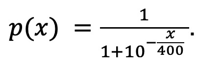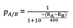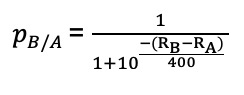 Pour comprendre le système, considérons Armand et Béatrice, un lycéen et une lycéenne qui jouent très régulièrement aux échecs, et dont les nombres de points dans le classement Elo sont respectivement désignés par RA et RB. La probabilité pour Armand de battre Béatrice, notée pA/B, est alors donnée par :