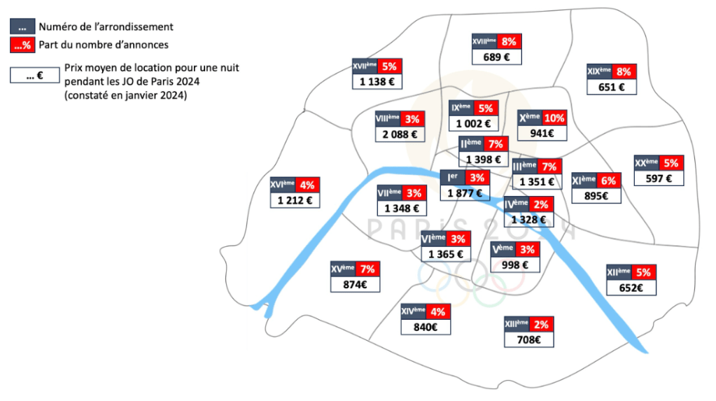 3) A l’été 2023, le prix moyen d’une location à Paris était d’environ 100 euros la nuit.