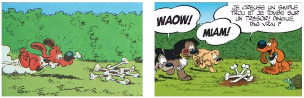 Bill, le fameux cocker de Boule dans la série de bande dessinée « Boule et Bill » – qui atteint tout même son 45ème album en 2024 ! -, est connu pour la fidélité à son maître ou sa malice. Il est aussi connu comme un fervent amateur d’os, qu’il n’hésite pas à amasser dans ses différentes cachettes dès que l’occasion se présente ! Et quand le tas d’os accumulé devient important, rien ne vaut le plaisir de les partager avec tous ses amis….