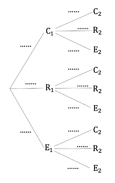Remplir l’arbre ci-dessous qui modélise la situation (écrire les probabilités sous forme de fractions irréductibles).